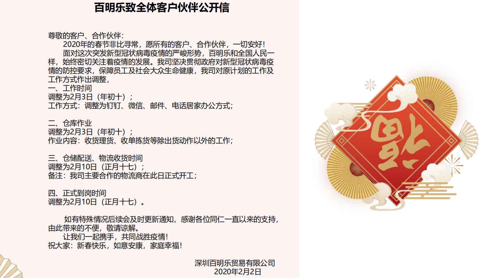 百明(míng)樂(yuè)緻全體(tǐ)客戶夥伴公開(kāi)•≠信