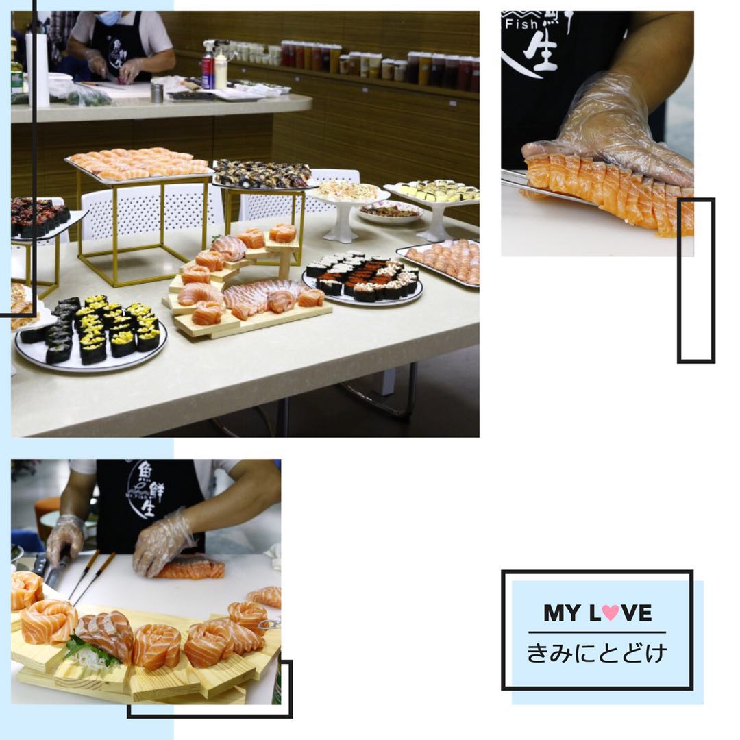 久違的(de)下(xià)午茶,企管中心的(de)小(xiǎo)姐(jiě←φ∑)姐(jiě)們請(qǐng)來(lái)了(le)壽司團隊現(xiàn)>$場(chǎng)制(zhì)作(zuò)新鮮美(měi)味的(de)λ 壽司刺身(shēn),